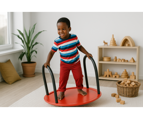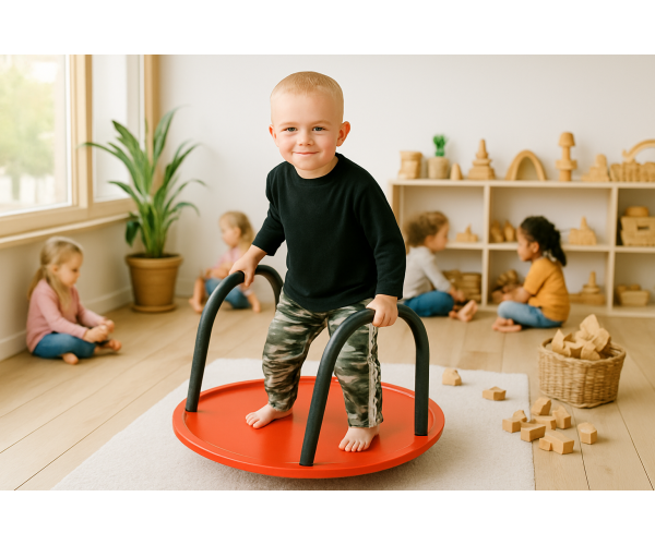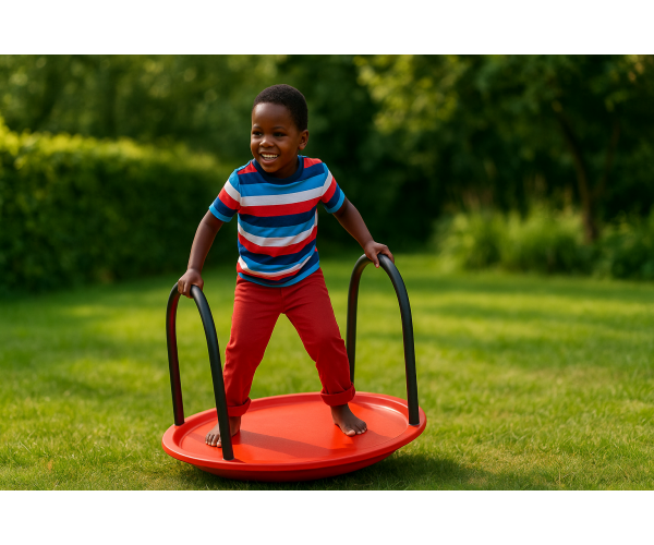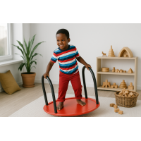 Het balansbord is te gebruiken door 1 of 2 kinderen tegelijk, ze kunnen er zowel op staan als zitten. Het balanceerbord is voorzien van een antislip oppervlak en 2 handbeugels die bedekt zijn met zacht foam voor een goede grip en veiligheid.